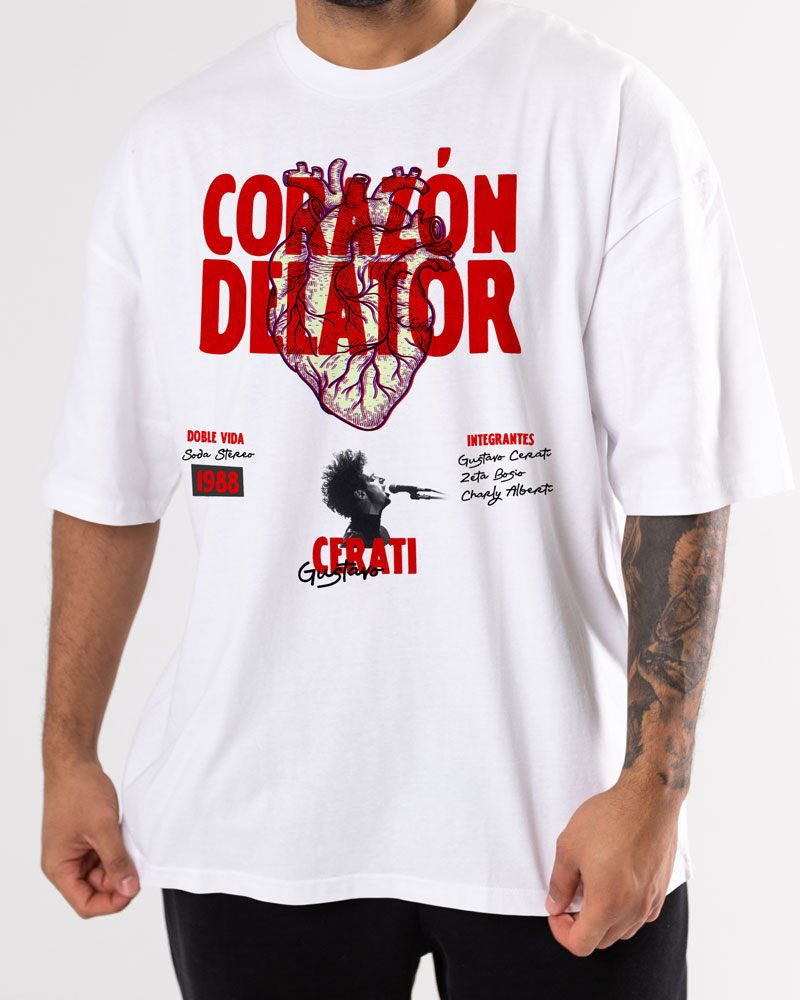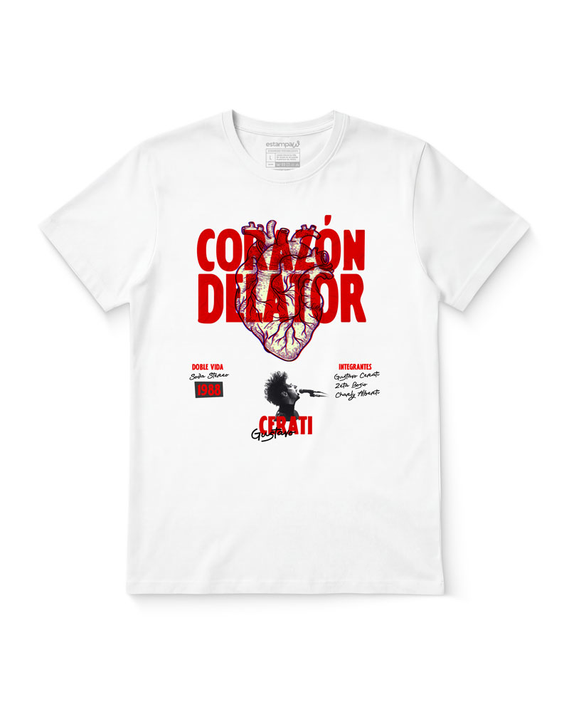 Polera inspirada en “Corazón Delator” de Gustavo Cerati, un himno del rock latino. Diseño con identidad y estampado de alta calidad para quienes sienten la música como parte de su esencia.