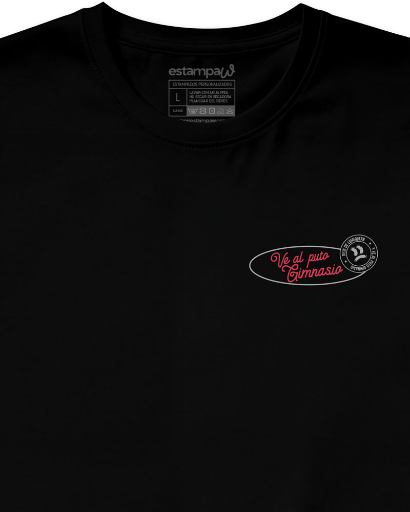 Polera con la frase “Ve al puto gimnasio”. Un diseño sin filtros y con actitud, estampado de alta calidad para quienes van en serio.